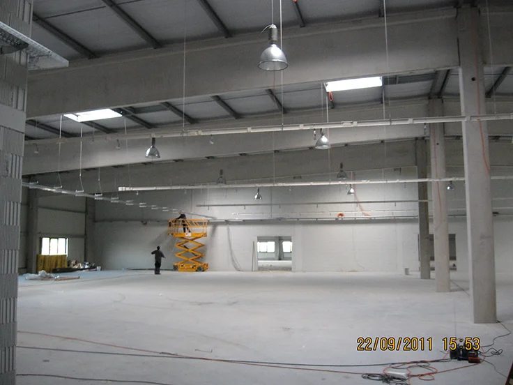 In diesem Projekt enstand eine Gewerbeimmobilie samt Produktions- und Lagerhalle. Zusätzlich wurde eine Bürotrakt im vorderen Bereich angebaut, sodass Logistik, Steuerung und Büroeinheiten miteinander verbunden werden konnten um optimale und effiziente Prozesse gestalten zu können.