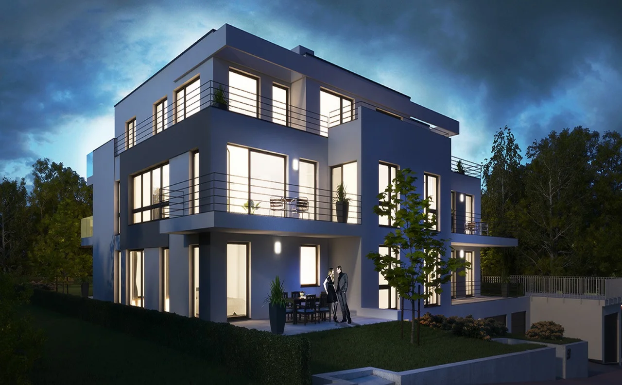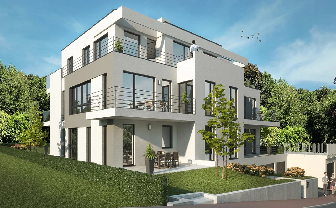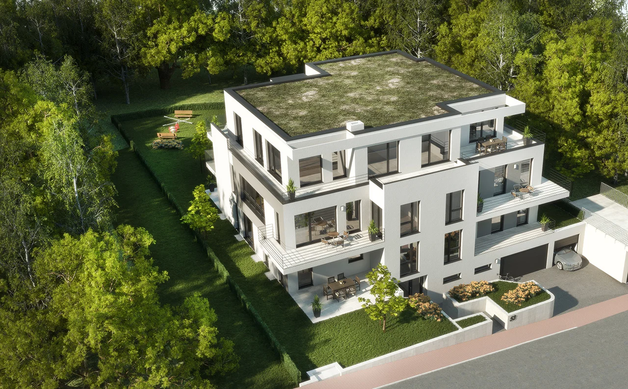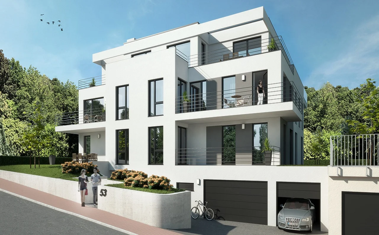 Hier ensteht modernes und zukunftsorientiertes Wohnen. In unserem aktuellen Projekt entstehen sechs Familienhäuser mit einer Wohnfläche von 75 bis 130 Quadratmeter. Die Wohnungen überzeugen durch ihre gelungene Verbindung von Exklusivität und optimaler Nutzungsmöglichkeit. Die Wirkung der bodentiefen Fenster mit der feinen Unterteilung wird durch die transparenten Balkonbrüstungen unterstrichen. Die Penthouse-Wohnung rundet das Gesamtobjekt bzgl. Modernität, Design und Luxus ab. Die Tiefgaragen bieten direkten Zugang zum Gebäudekomplex und fallen ebenfalls durch eine extravagante Art auf.