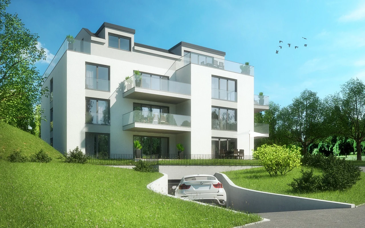 Hier ist zukunftsorientiertes und modernes Wohnen entstanden. In unserem Projekt entstand ein 10-Familienhaus mit einer Wohnfläche von 75 bis 125 Quadratmeter. Durch durchdachte Kriterien und unserer langjährigen Expertise wurden alle Ansprüche des modernen Wohnens erfüllt, sodass unsere Erfolgsgeschichte fortgesetzt werden kann. Die Tiefgarage ist direkt mit dem Baukomplex verbunden. Die Natur und der kurze Übergang in die Stadtmitte suchen ihresgleichen durch zukunftsorientierte Architektur, durchdachten Wohnräumen und bodentiefen Fenstern, die das perfekte Raumgefühl garantieren. Die Wirkung der feinen Unterteilung wird durch die transparenten Balkonbrüstungen unterstrichen.