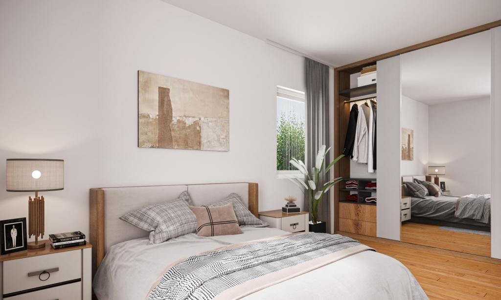 bzw.- West-Ausrichtung und sind schwellenlos gebaut. Die Gesamtkonzeption wird barrierefrei geplant.