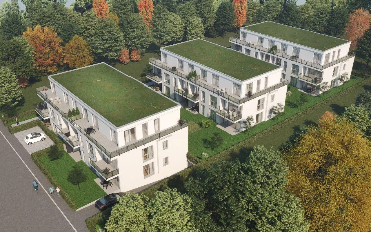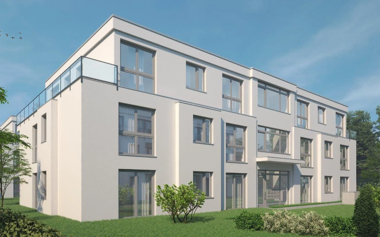 Hierbei handelt es sich um 30 Wohnungen von 2, 3, 4 Zimmerwohnungen nach 55 KFW Standard. Diese Häuser werden nach dem o.g. Standard gebaut und sind durch eine gemeinsame Tiefgarage erschlossen. Wir haben uns zu einem Neubau der Anlage entschlossen um dringend notwendige Wohnräume und ausreichende Stellplätze die komplett oberirdisch in Doppelgaragen angeordnet sind zu schaffen. Der Bestandsbau wird Ordnungsgemäß abgerissen. Der Neubau (Flachdach inkl. Solarthermie) wird in konventioneller Bauart erstellt. Die Außenhülle nach aktueller GEG, Energieeinsparverordnung, alle nichttragenden Innenwände in Gipskarton-Ständerwand.